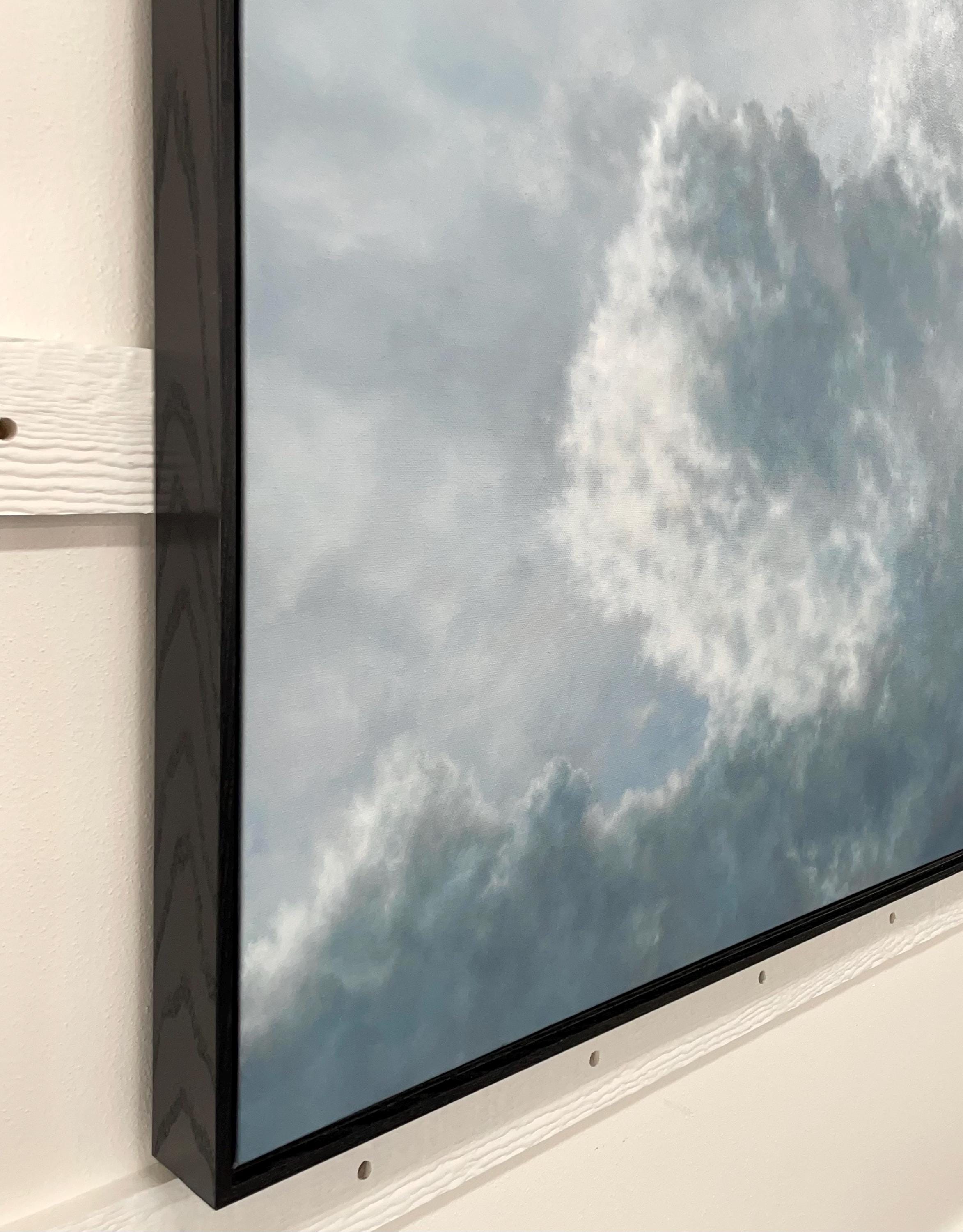 “Wind Song”, taking that moment to quiet your mind and listen to what surrounds you. An original 30”x40” oil painting on 1 1/2” gallery wrapped canvas. Mounted in a maple floating frame to complete the piece. Signed and wired on back ready to hang.
